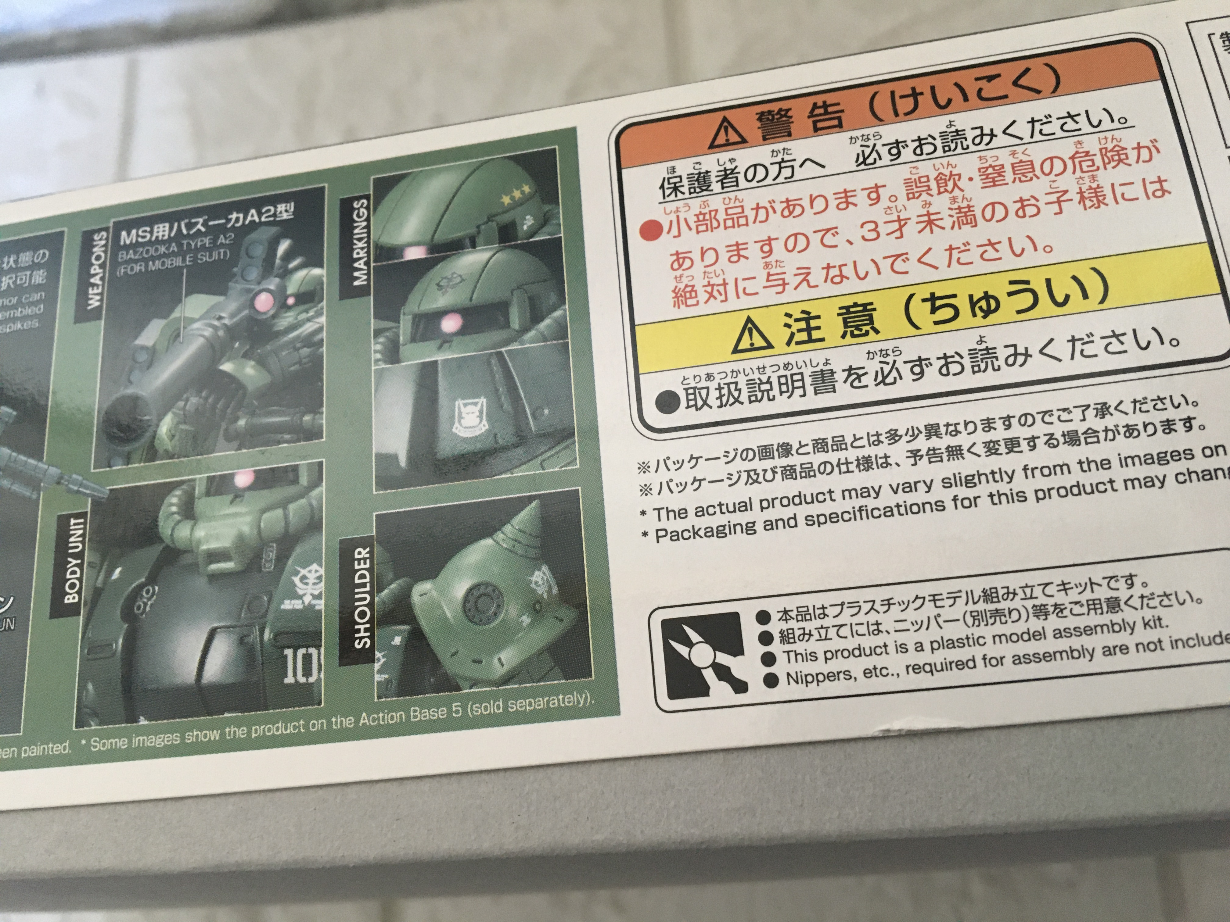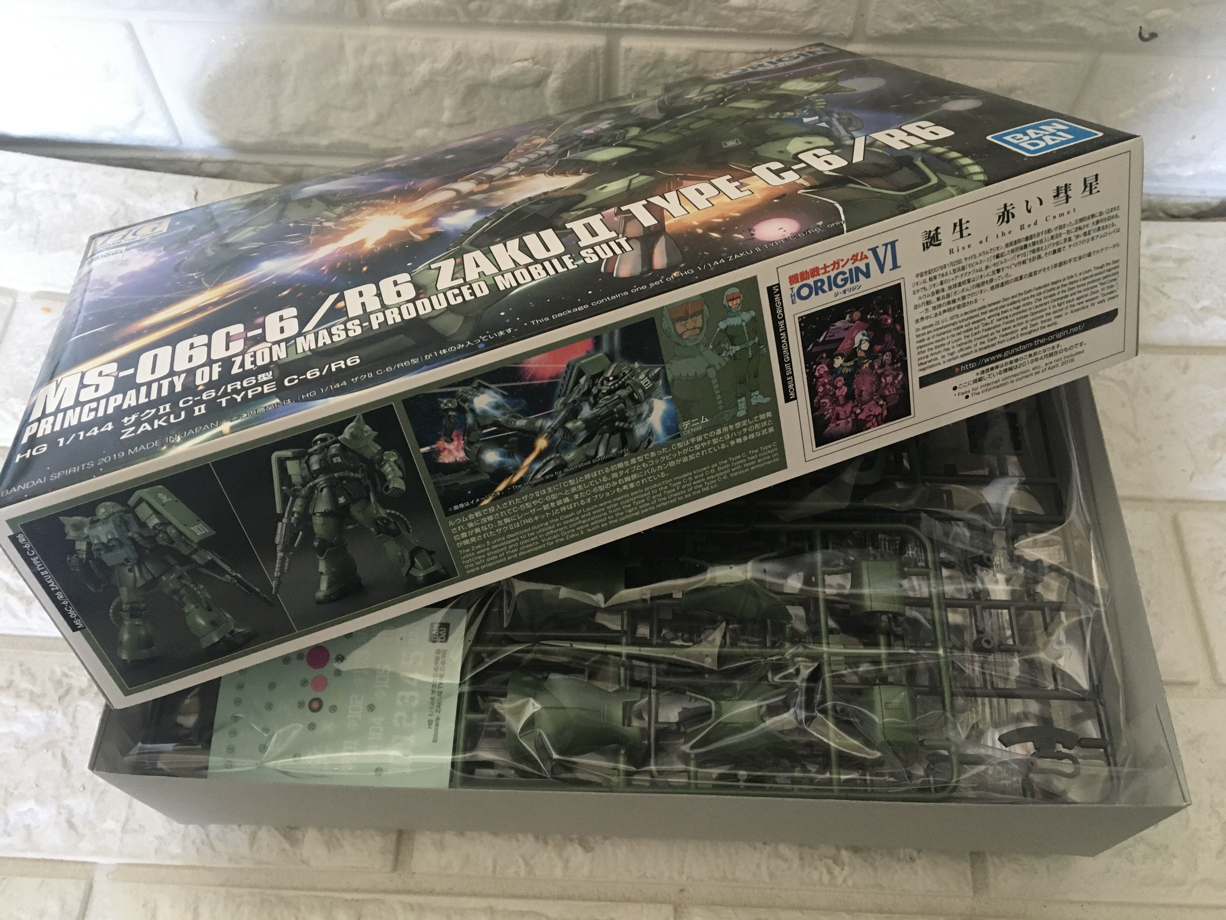 이번의 모형은 새로 나온 것이니 만큼 ' 자쿠2 C-6/R6'의 플라스틱 사출 색이 기존의 '자쿠 2 C-5/R5'보다 조금 밝게 나왔으면 하는 기대는 있었습니다만 그런 부분이 변경되지 않은 체 같은 사출 색으로 판매되고 있습니다.