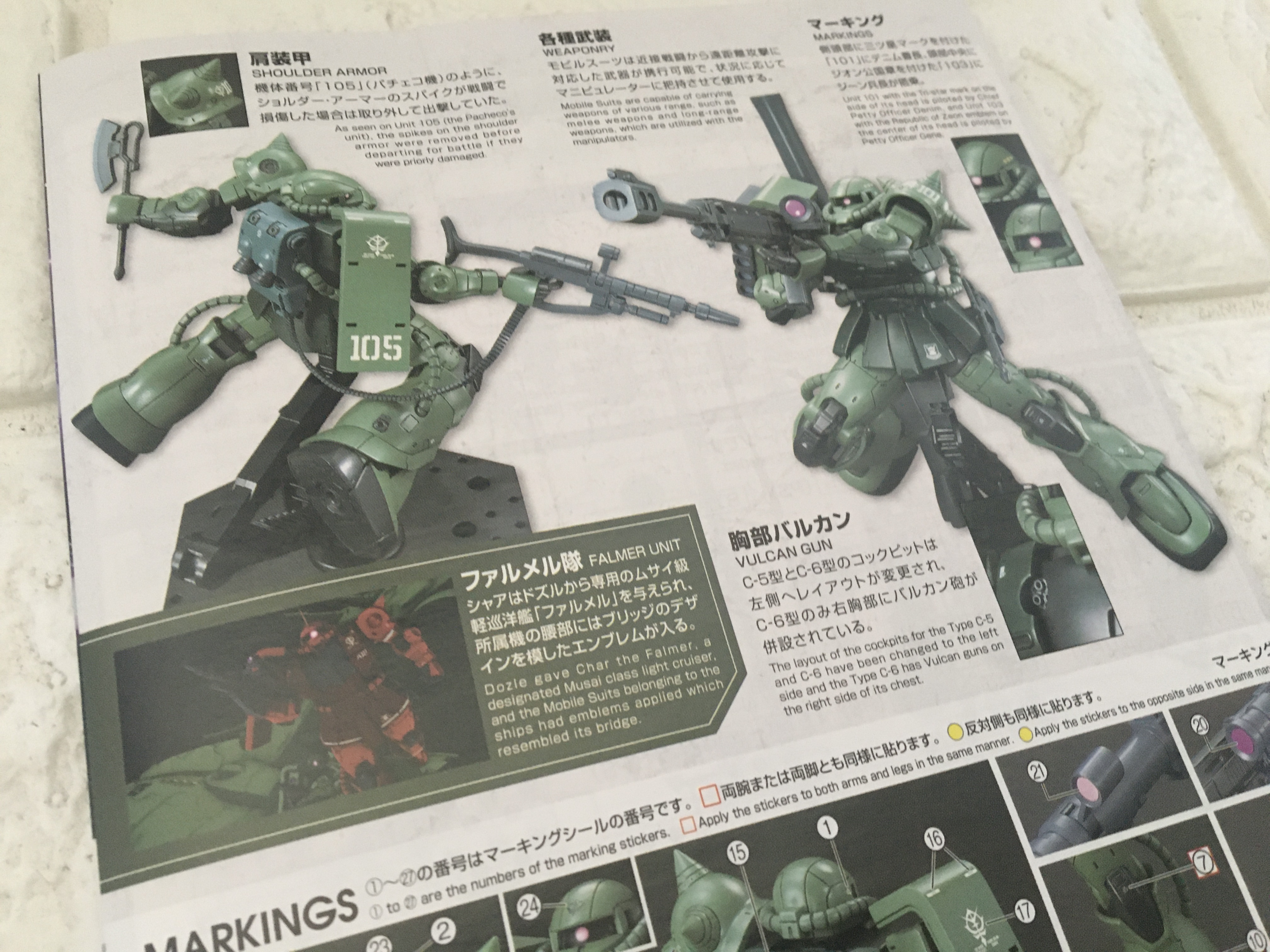 이전에 발매된 '자쿠2 C-5/R5'와 무장과 외장이 몇 가지 교체되었다고 하는데