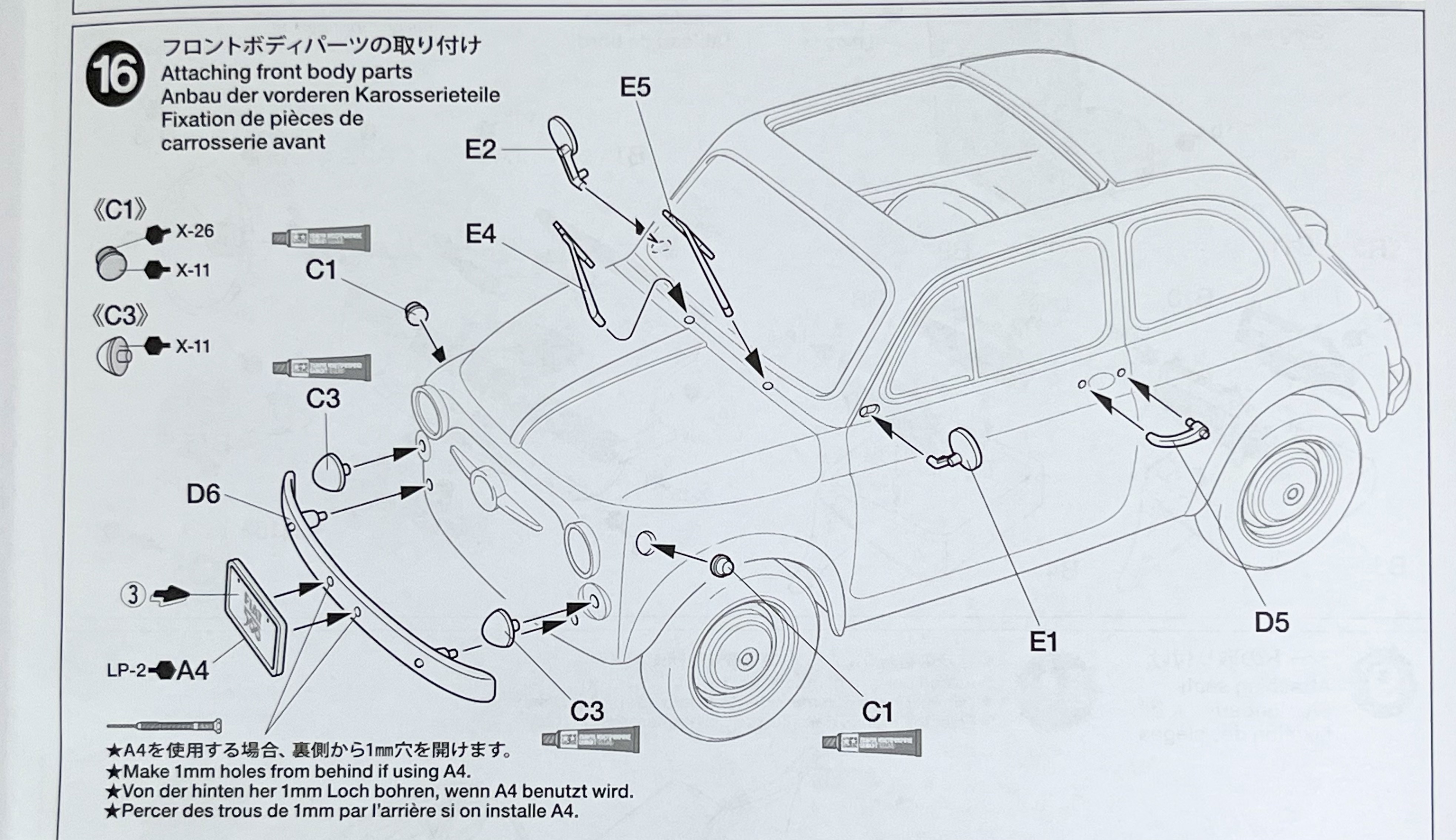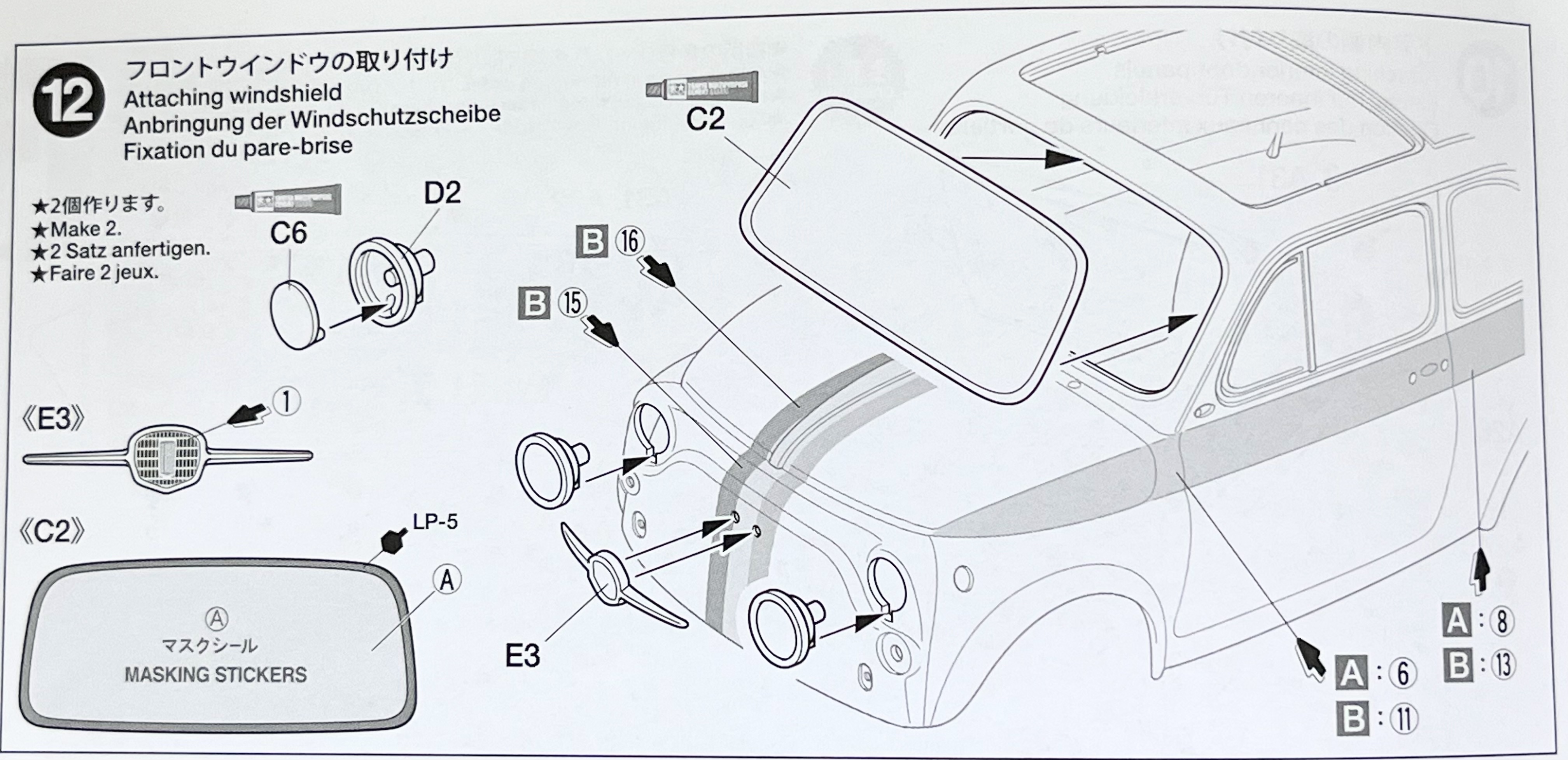프론트 윈도우와 헤드라이트 등의 옵션 파츠의 조립입니다.