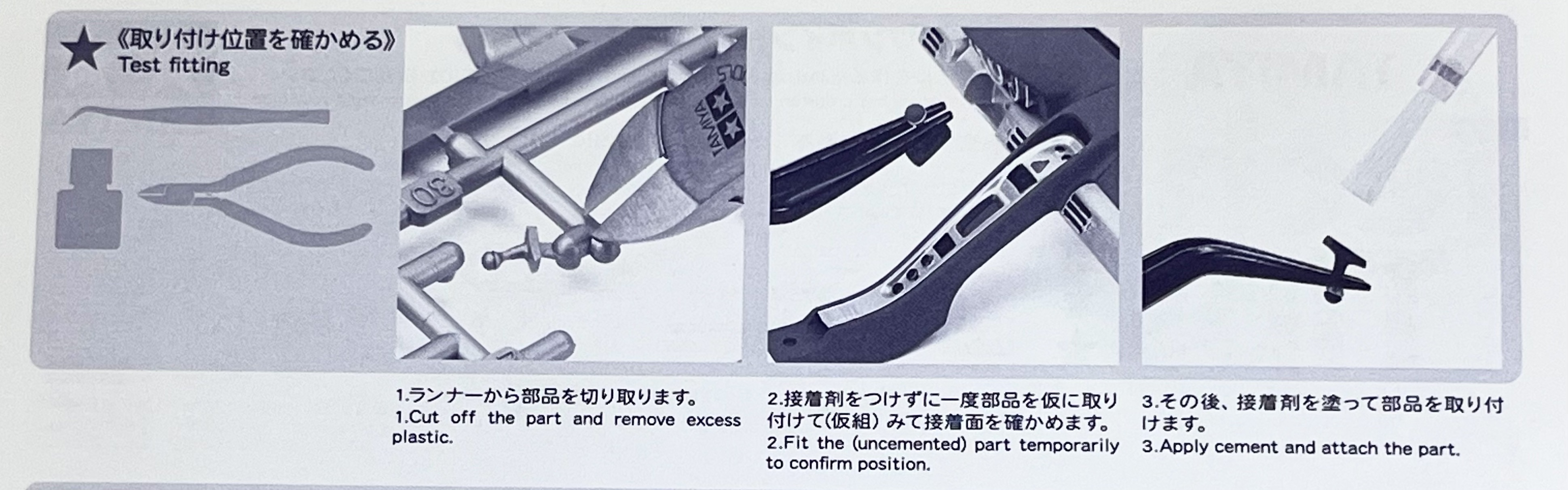 4. 부품 절취에는 니퍼 등을 사용하고 잘라낸 뾰족한 부분이 남지 않게 해 주세요.