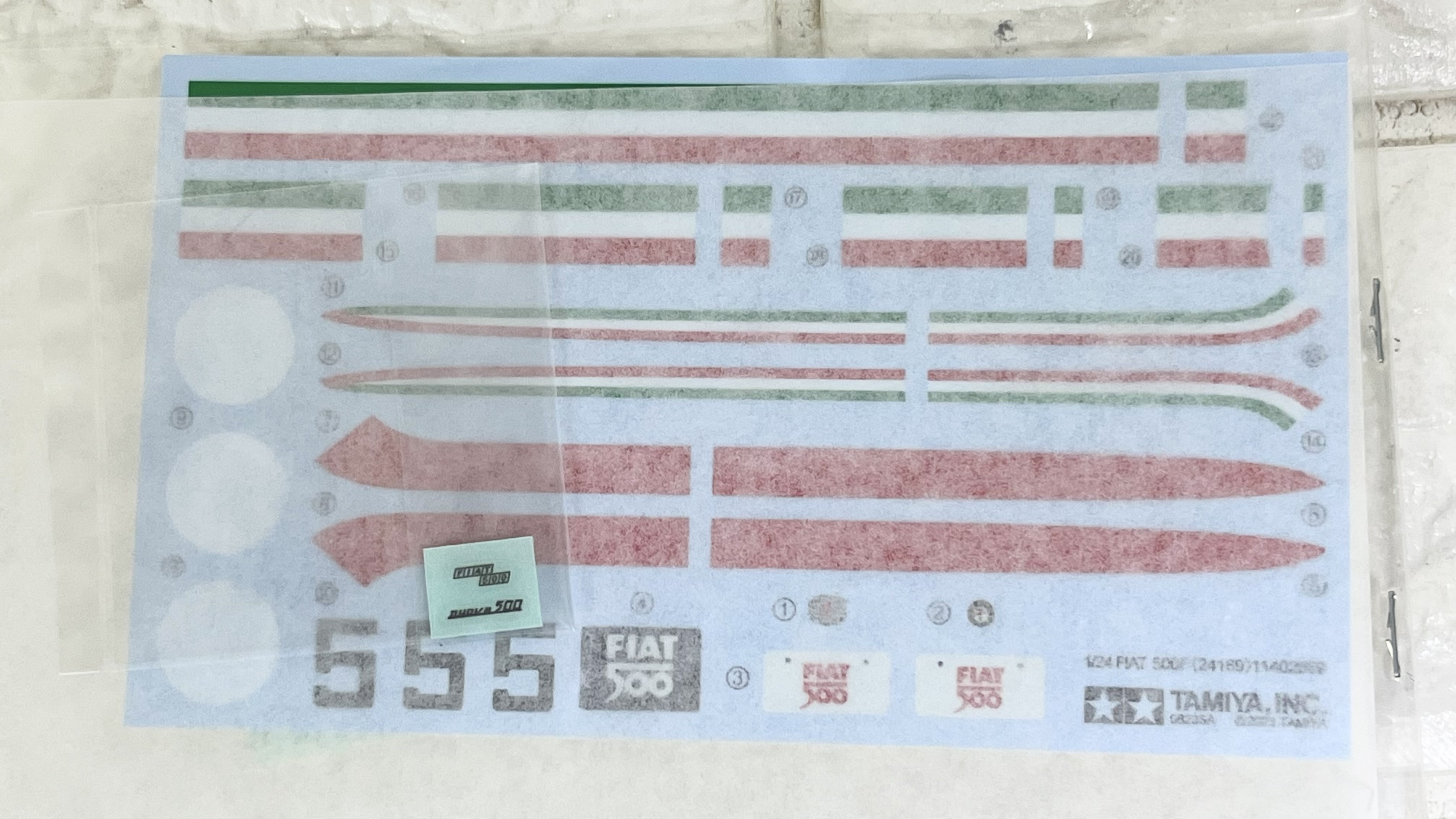 필요 최소한의 사이즈의 실용 트랜스포터로서 1957년에 태어나서 경쾌한 운동성능으로 높은 인기를 모은 피아트 500. 출시 당시 카탈로그상의 대표적인 바디 컬러로는 그레이, 아이보리, 블루 등이 있으며 또한 내장 색상으로는 레드, 베이지, 그레이 등이 있었습니다. 각각의 색상은 P2 표를 참고해 주세요. 또한 키트에는 사이드나 루프용 옵션 스티커도 준비했습니다. 가지고 계신 자료 등을 참고하여 다시 오너가 된 것 같은 마무리를 즐기세요.