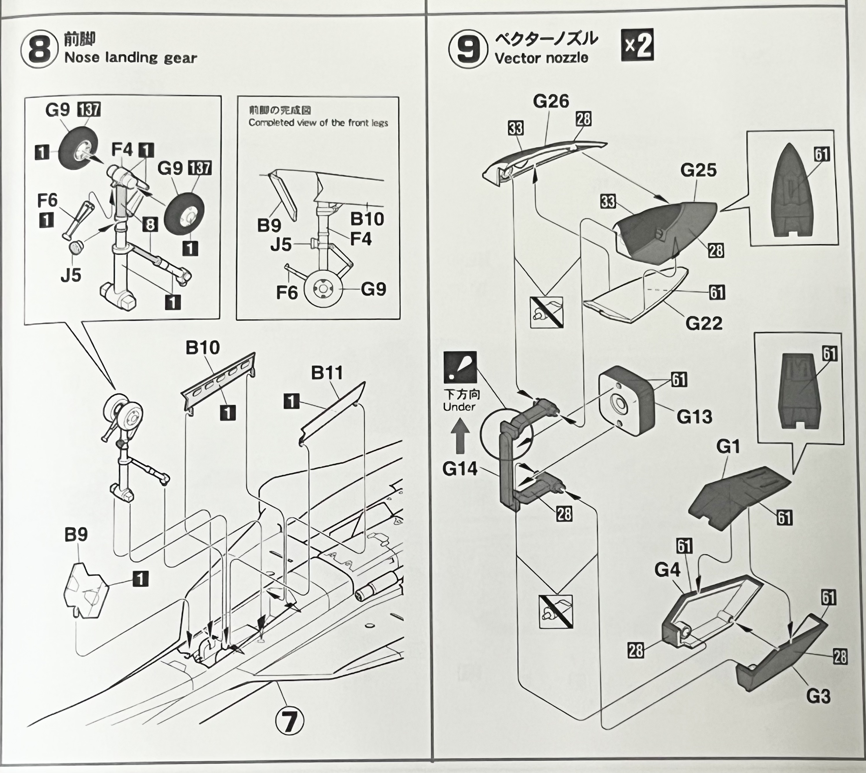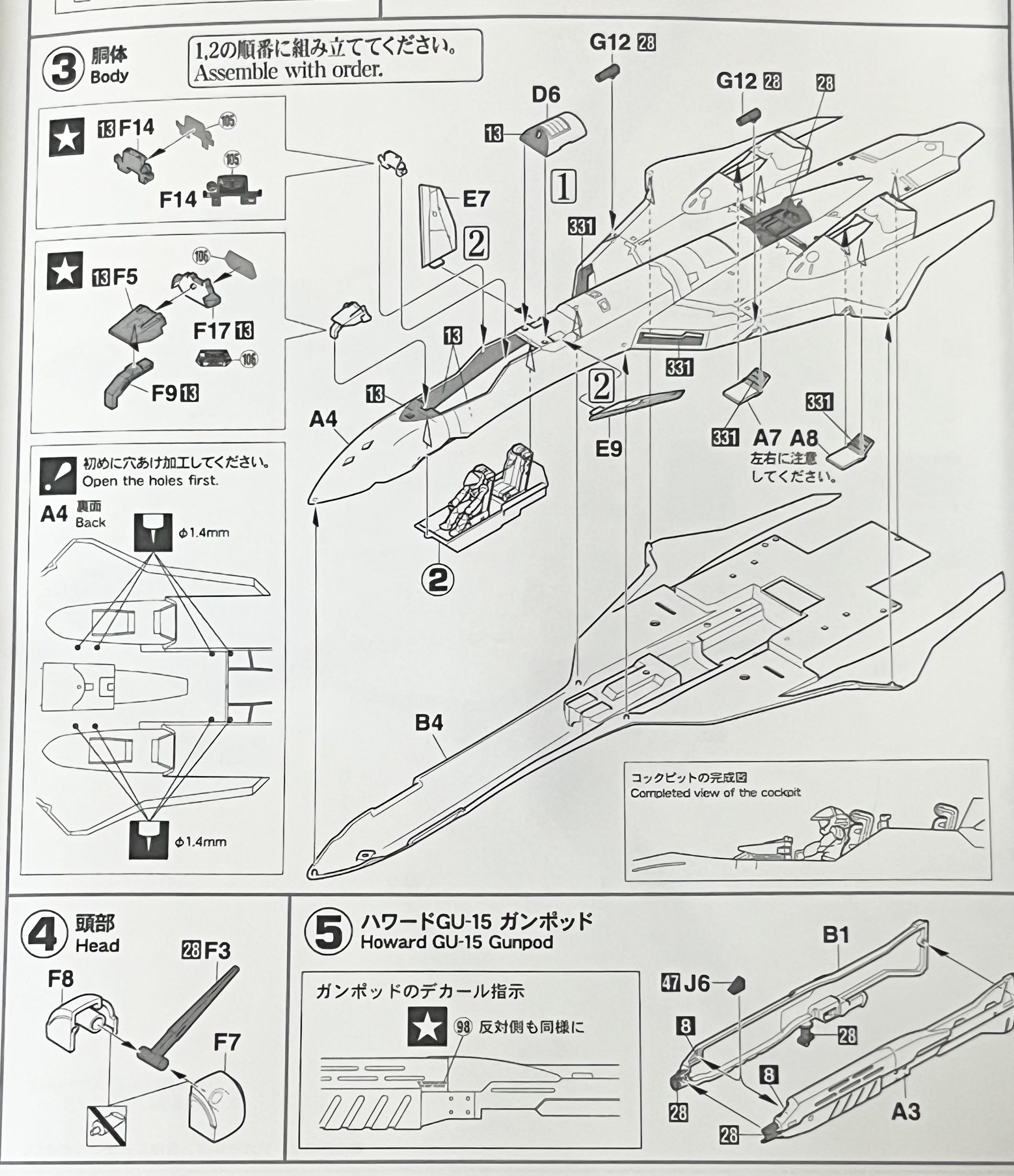 반다이식 건담 프라모델만 주로 만들어오시던 분들은 생소한 조립 방식에 당황하시는 경우가 많은데 사실 반다이가 특이한 경우고 일반적인 프라모델은 다 이런 방식의 스케일 모형 조립 스타일이라고 생각하시면 되겠습니다.