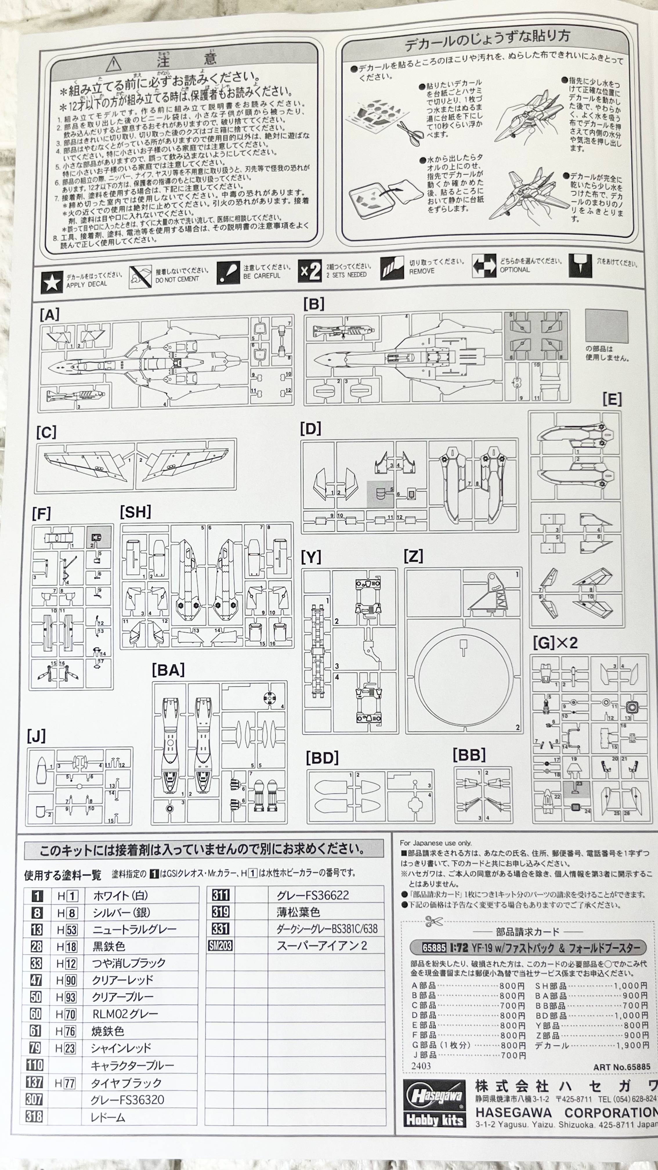 조립의 난이도가 올라가고 있는 형편이고… 실물 축소 모형의 제작방식을 고집하던 하세가와도 최근 일정 정도의 색분할 피츠와 접착제를 사용하지 않아도 되는 조립방식을 도입하는 등 조립의 편의성이 좋아지고 있습니다.