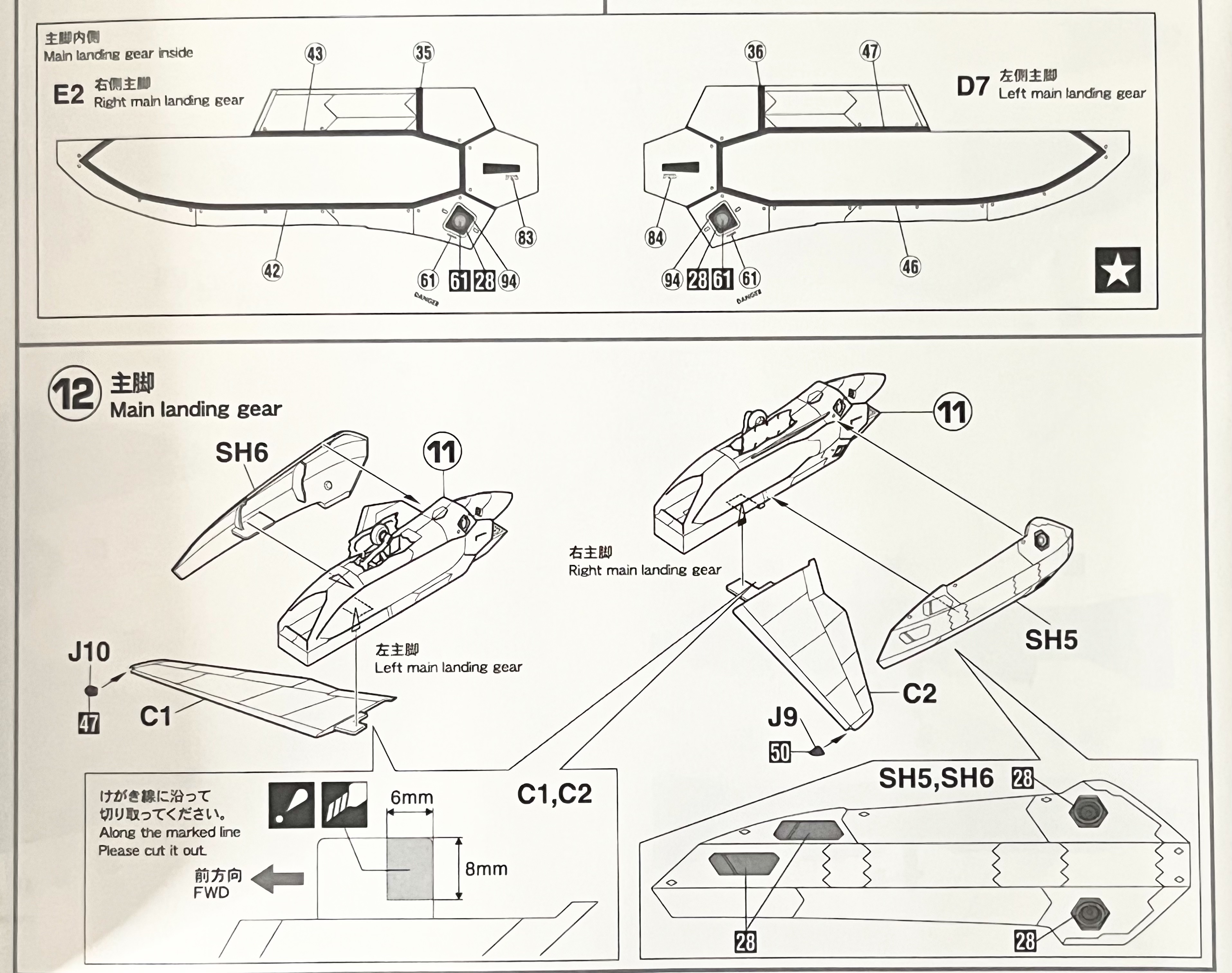 YF-19의 날개는 조립 전에 설명서가 지시하는 방향에 맞추어서 6mm X 8mm 사이즈를 잘라내어야 합니다.