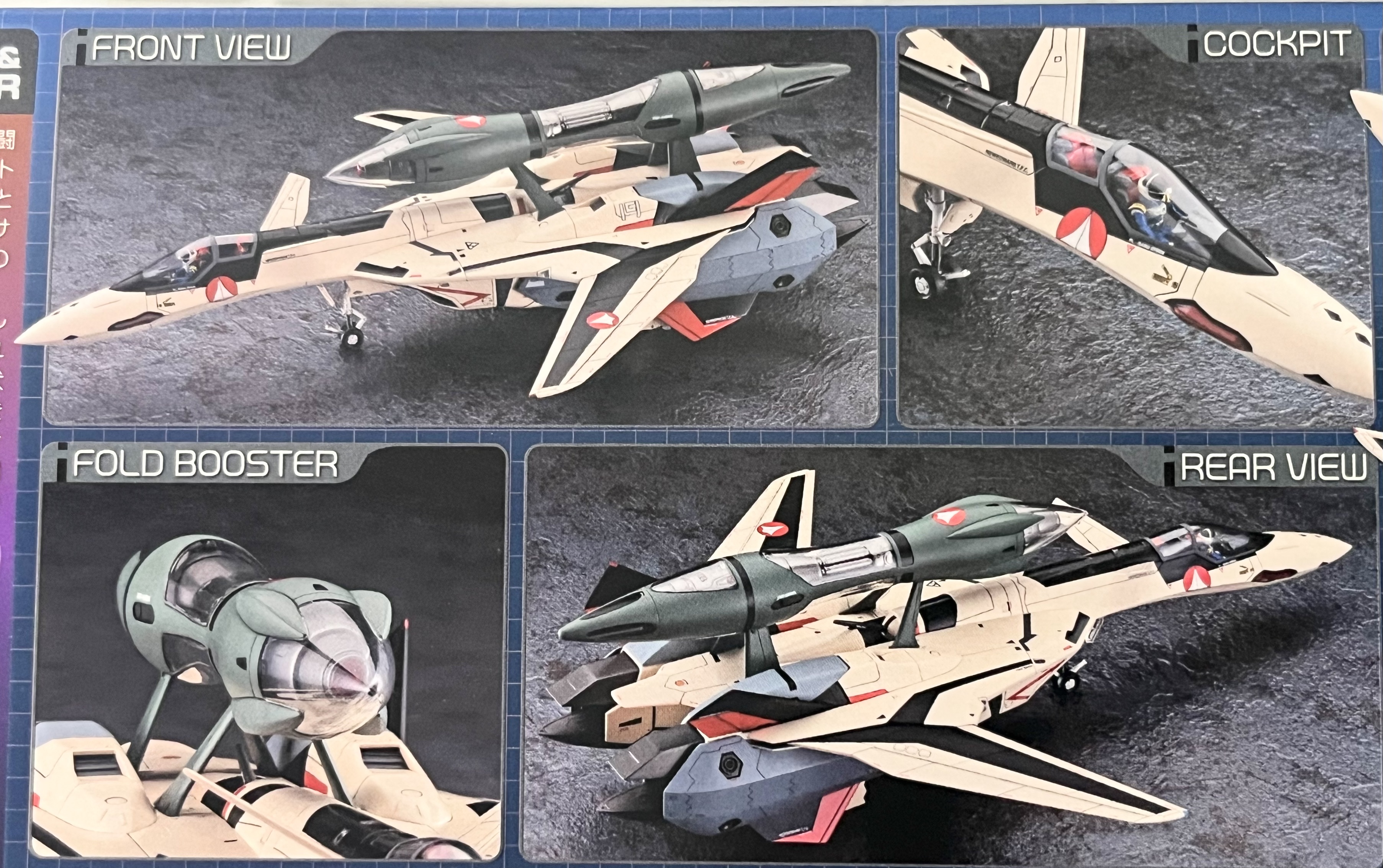 ■ 이사무 다이슨 탑승하는 YF-19에 패스트팩과 폴드 부스터를 장착한 모습 재현. 조종석은 복좌 / 단좌 선택 가능. ■ 탑승 자세의 파일럿 피규어 포함. ( 뒷자리 얀 노이만은 포함되어 있지 않습니다. ) ■ 캐노피는 열림 / 닫힘 선택 가능. ■ 인테이크는 개 / 폐 선택 가능. ■ 벡터 노즐 가동. ■ 다리는 주기 상태를 재현. ■ 마크로스 스탠드 포함.