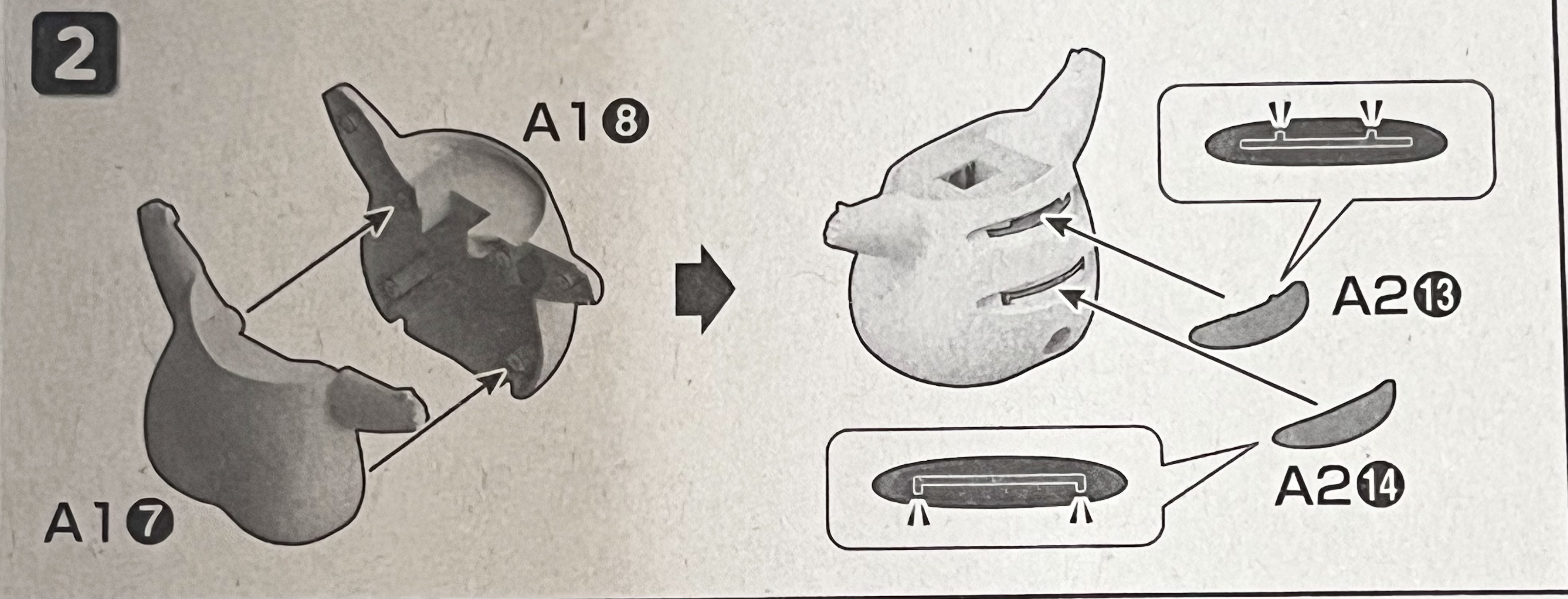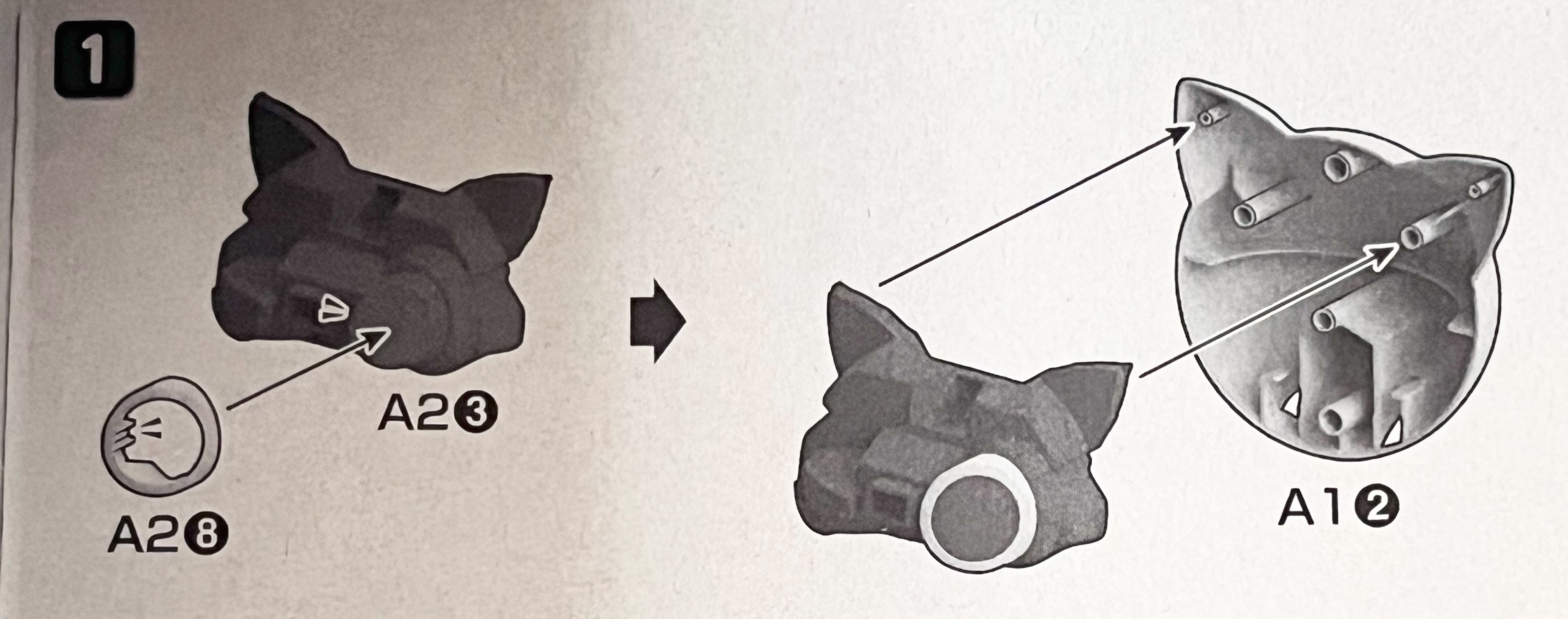 조립은 눈부터 시작인데 특이하게 검은색 눈동자 파츠에 흰색의 눈자위를 결합하는 방식으로 되어있습니다.