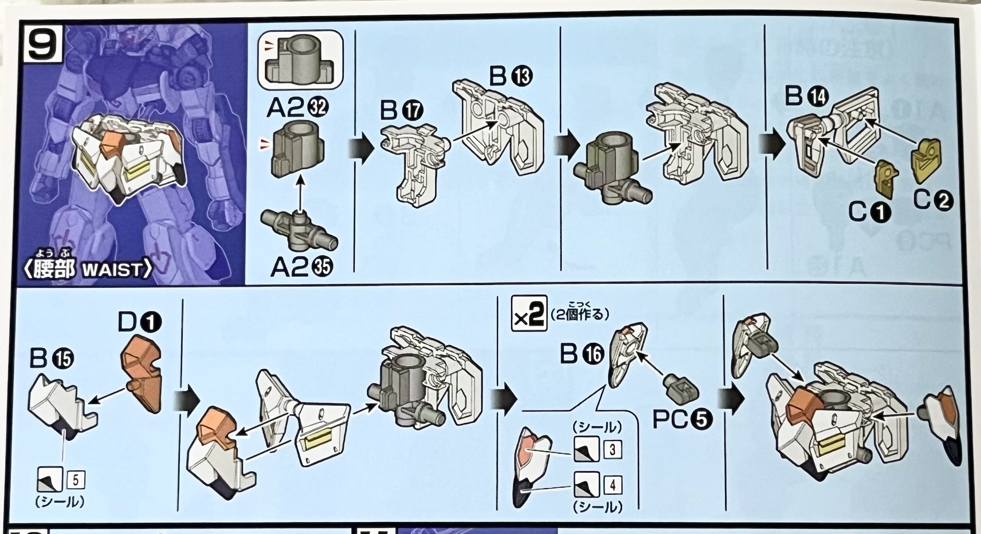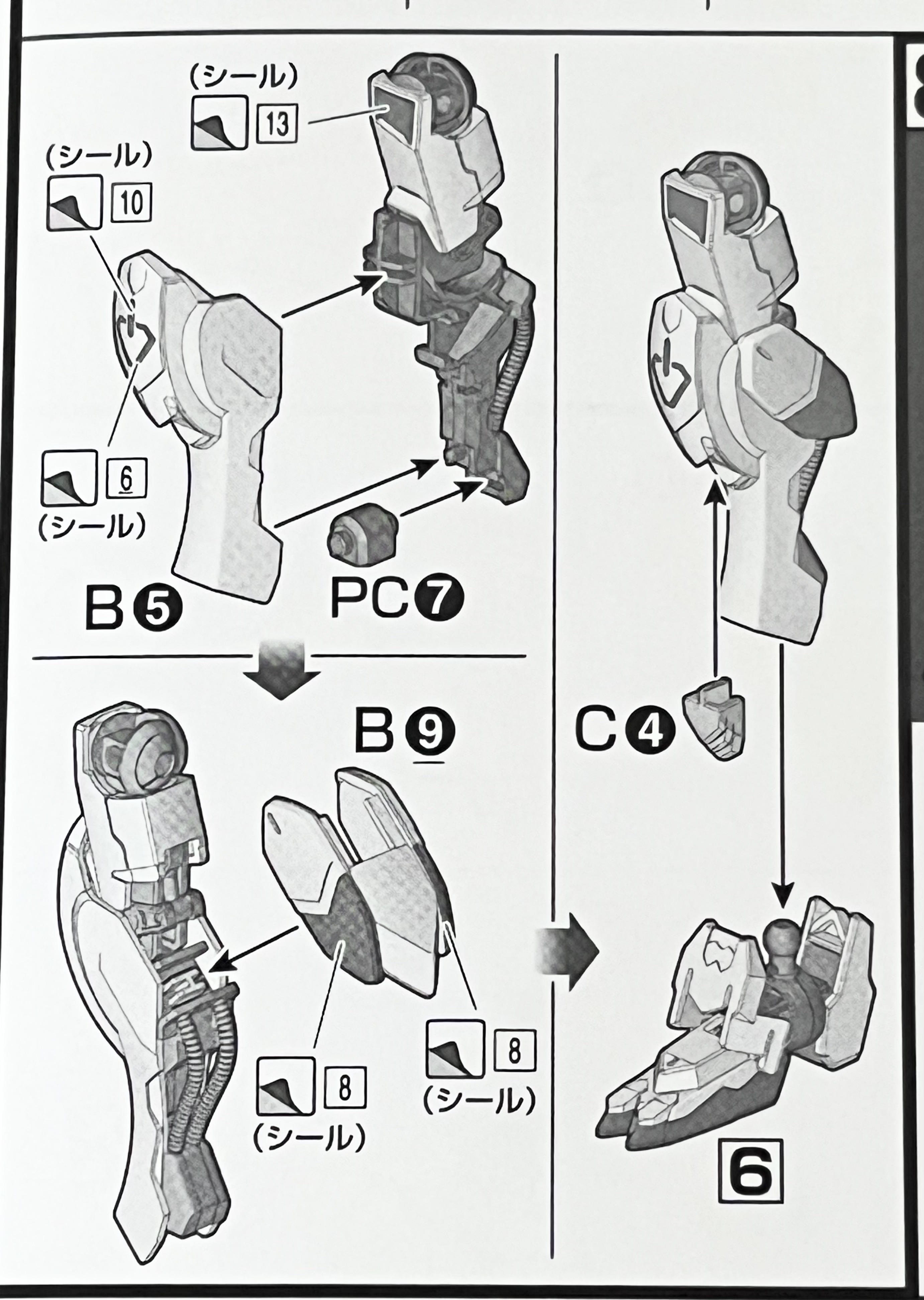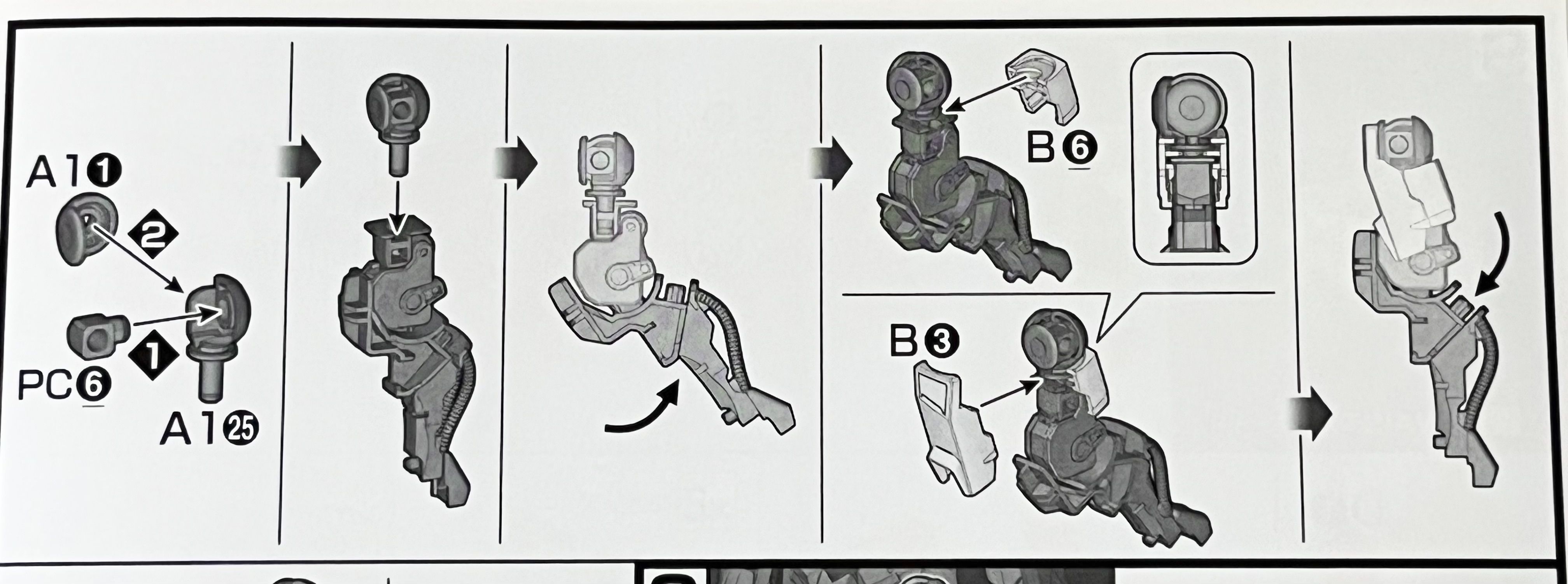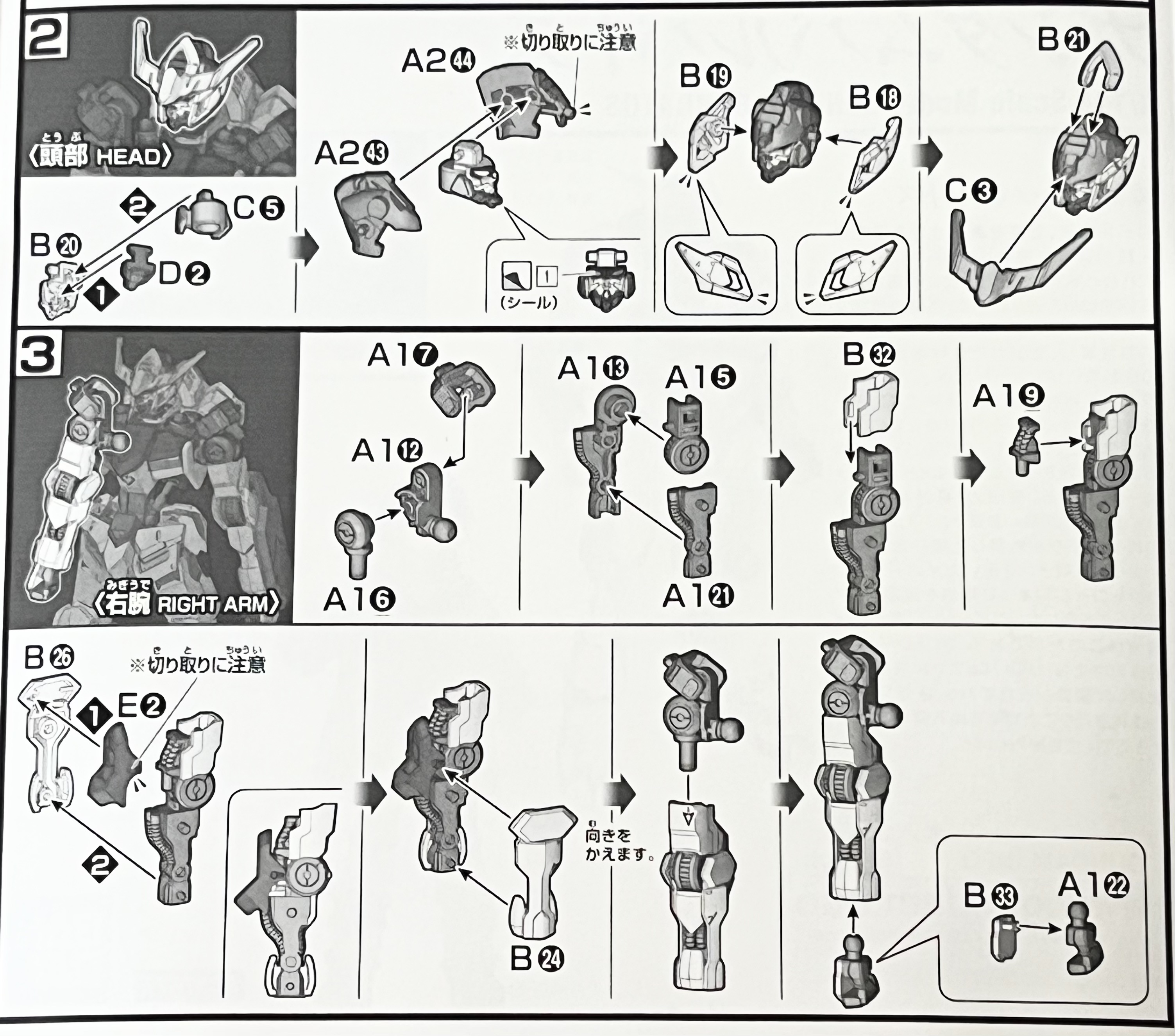 다음은 특이하게 생긴 헤드( 머리 )의 조립을 지나서 팔로 이어집니다..