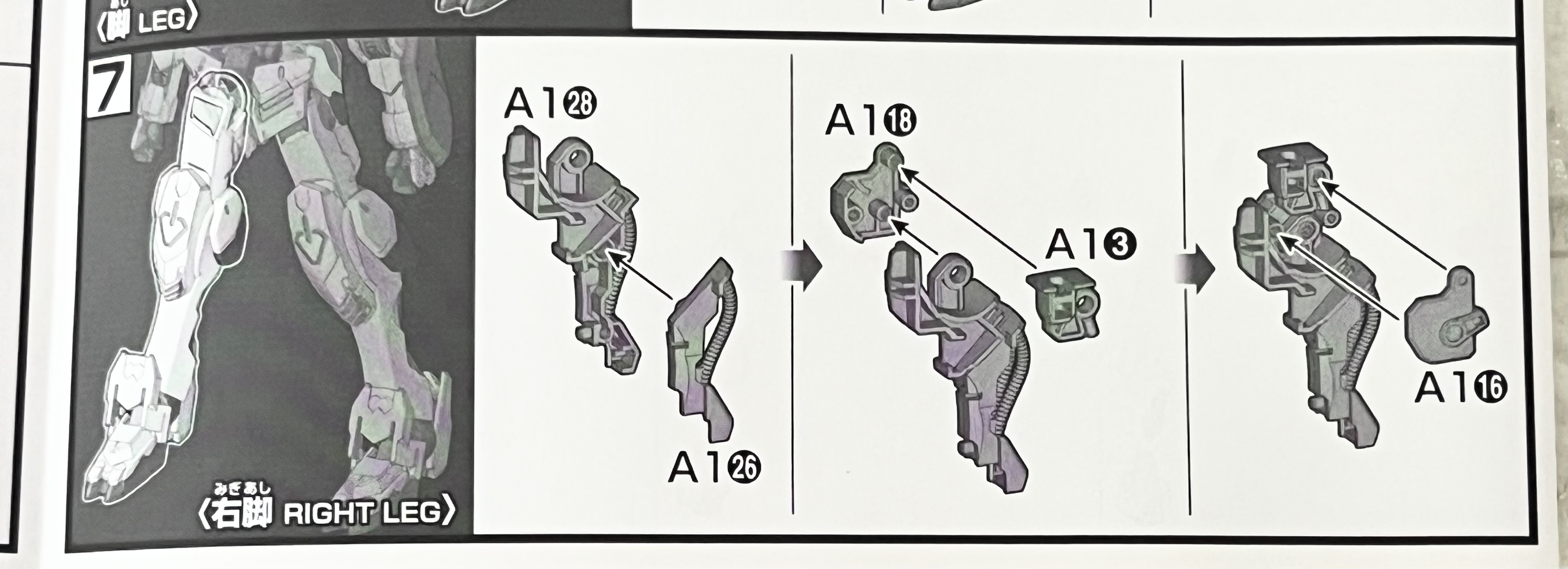 프레임 위에 장갑을 결합해 주고 미리 조립해 둔 발을 결합하면 왼쪽 다리는 완성입니다.