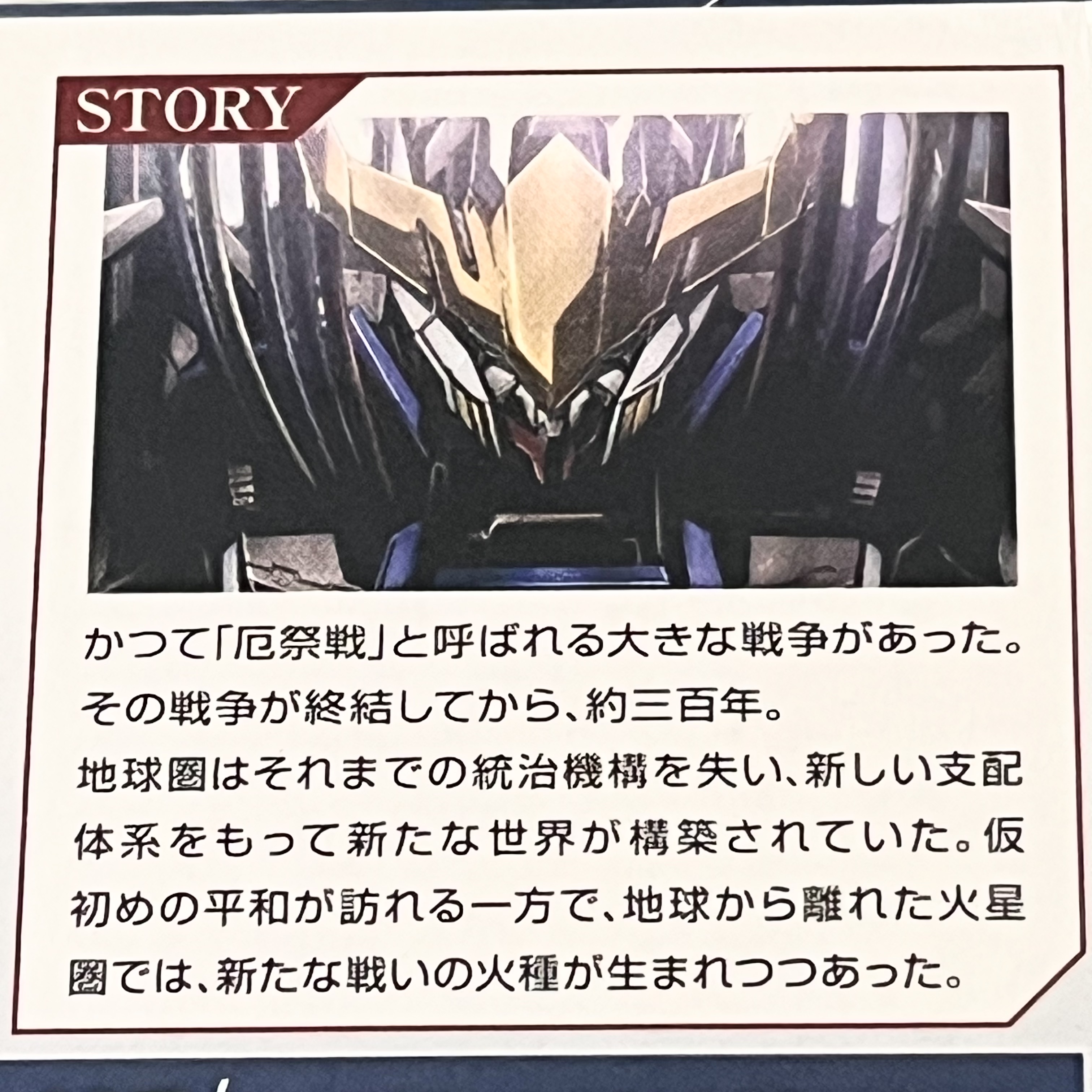 < 액제전 >으로부터 약 300년 후. 마르바 아케이( マルバ··アーケイ )에 의해 화성의 사막에서 발견되었다. <에이하브 리액터>는 아직 가동 상태에 있었고 이후 미카츠키 오거스가 탑승할 때까지 < CGS > 본부 시설의 동력원으로 활용되고 있었다.