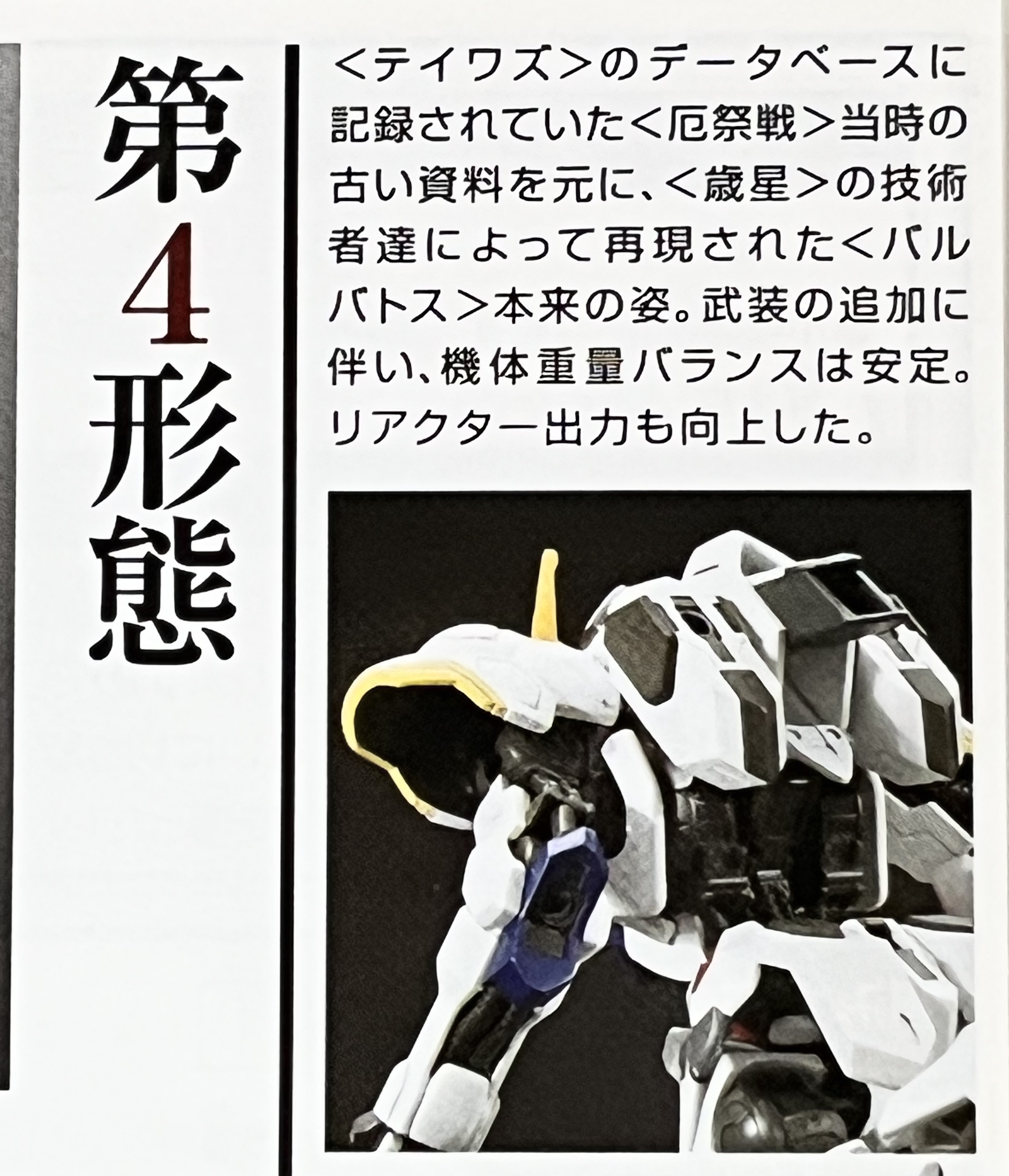 < 테이와즈 >의 데이터 베이스에 기록되어 있는 < 액제전 > 당시의 오래된 자료를 바탕으로 < 사이세이 >의 기술자들에 의해 재현된 < 발바토스> 원래의 모습. 무장이 추가됨에 따라, 기체 중량 밸런스는 안정. 리액터 출력도 향상했다.