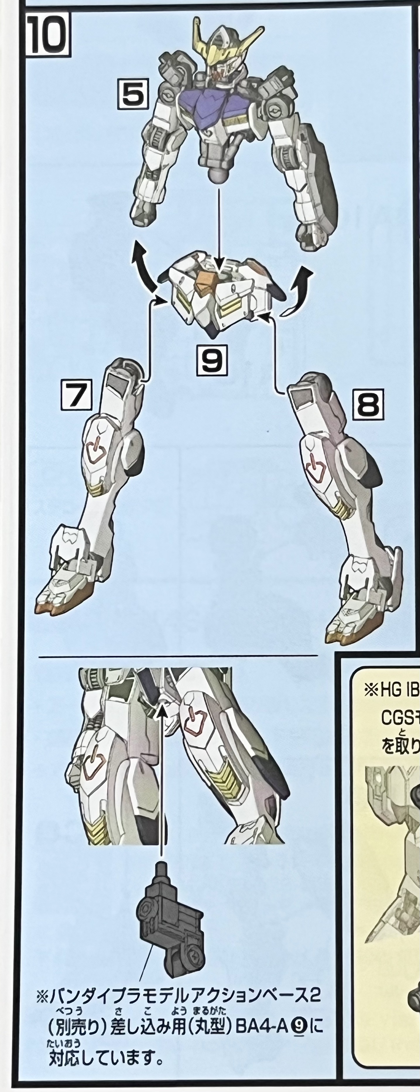 ( 전시용 액션 베이스는 별도 판매의 ‘반다이 프라모델 액션베이스 2’를 쓰고 결합부에는 둥근 형태의 BA4-A부품으로 연결시켜 준다고 합니다. )